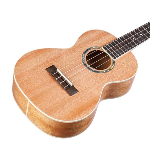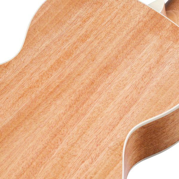 Het bovenblad is gemaakt van mahonie, een houtsoort bekend om zijn warme klanken. Dit draagt bij aan de diepe, melodieuze tonen die tenor ukeleles zo geliefd maken. De zij- en achterkant zijn eveneens van mahonie, wat zorgt voor een consistente klankkwaliteit en duurzaamheid.