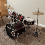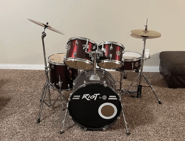 Met het Dixon Riot 520WR Wine Red 5-delige drumstel haalt u een zeer complete set in huis. De vijf ketels zijn voorzien van een Wine Red Wrap finish en voorzien van verchroomde ketelhardware. Daarnaast vinden we een bekkenset, de benodigde statieven en niet te vergeten een drumkruk. En dat alles voor een voordelige prijs, kortom een mooi kit voor de beginnende drummer.
