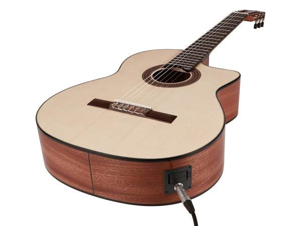 Klassieke gitaar, massief sparrenhouten bovenblad, mahonie zij- en achterkant, pau ferro toets, Fishman Presys II